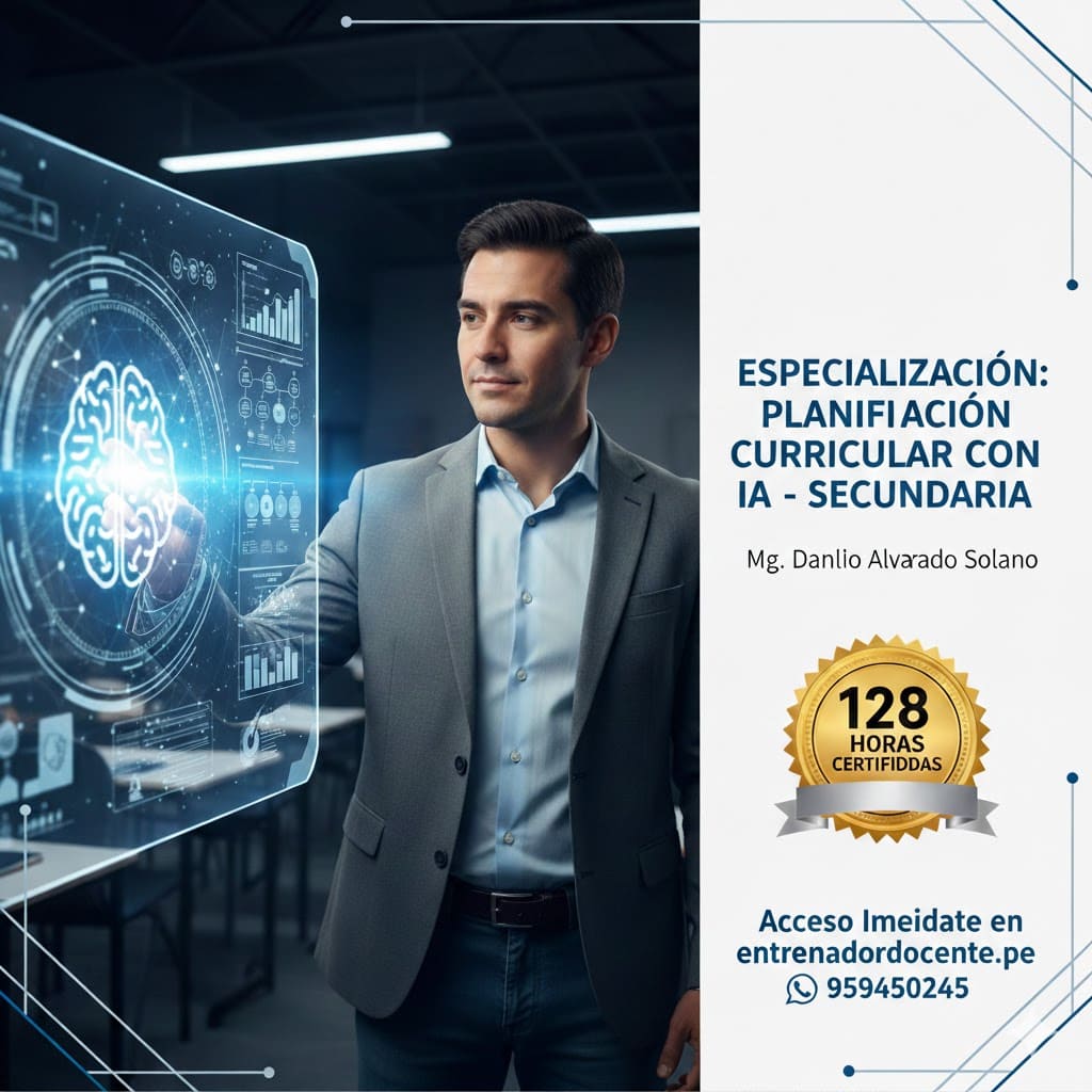 Transforma tu práctica docente con el poder de la tecnología. Aprende a diseñar experiencias de aprendizaje de alto impacto en el Curso Especializado: Planificación Curricular con IA / Nivel Secundario.